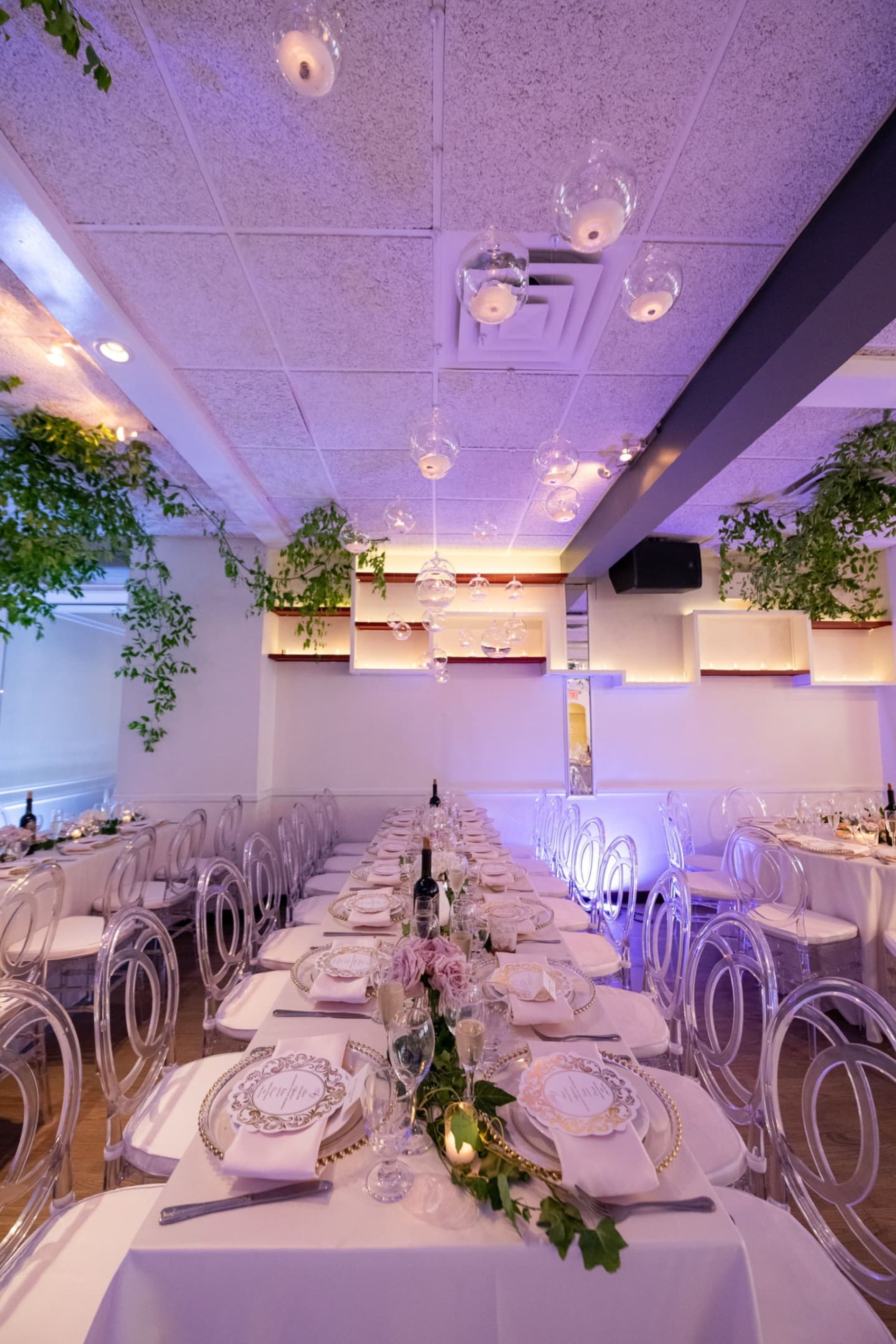 The Main Room sits at the heart of our venue and serves as the cornerstone for New York's most memorable events. Our largest space, ample room a view of our Mykonian Garden. This versatile space has hosted countless celebrations over the years and accommodates up to 100 seated guests or 150 standing.